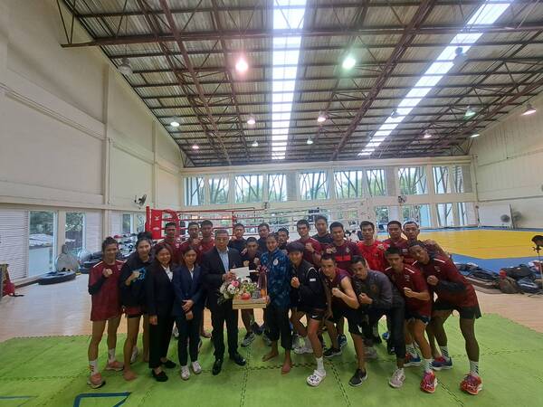 การฝึกซ้อมของนักกีฬามวยไทยชุดสู้ศึกซีเกมส์ ครั้งที่ 33 โดยมี จสอ.พงศ์พันธ์ นวนแก หัวหน้าผู้ฝึกสอน นำสต๊าฟโค้ชและนักกีฬามวยไทยทีมชาติไทยที่ประกอบไปด้วยนักกีฬาชาย 10 คนและนักกีฬาหญิง 6 คนให้การต้อนรับ โดย ดร.ณัฏฐ์ ธีรณัฐสุภานนท์ มอบกระเช้าผลไม้พร้อมเงินสนับสนุนการฝึกซ้อมให้ทีมนักกีฬามวยไทย เพื่อสร้างขวัญและกำลังใจจำนวน 20,000 บาท โอกาสนี้ ดร.ณัฏฐ์ ธีรณัฐสุภานนท์ ได้กล่าวให้โอวาทกับทีมนักมวยไทยชาย-หญิง ขอให้ตั้งมั่นอยู่ในระเบียบวินัยอย่างเคร่งครัด เชื่อฟังคำแนะนำจากผู้ฝึกสอน ทำหน้าที่ของตนเองอย่างเต็มที่บนเวทีการแข่งขัน เพราะนักกีฬาทุกท่านคือตัวแทนคนไทยทั้งประเทศ ดร.ณัฏฐ์ ธีรณัฐสุภานนท์ ยังแสดงความห่วงใยต่อสถานการณ์น้ำท่วมหนักที่ภาคใต้ ซึ่งจังหวัดสงขลาเองก็เป็นจังหวัดเจ้าภาพจัดการแข่งขันกีฬาซีเกมส์ ครั้งที่ 33 ถึง 10 ชนิดกีฬา และมวยไทยก็เป็นอีกชนิดกีฬาที่เดิมแข่งขันที่สนามพรุค้างคาว หาดใหญ่ ซึ่งตอนนี้พื้นที่ถูกน้ำท่วมทั้งหมด โดยมีระดับน้ำสูงกว่า 2 เมตร ก็ขอให้ กกท.ภาค 4 ที่ดูแลพื้นที่ภาคใต้ 14 จังหวัดทำงานร่วมกับหน่วยงานรับผิดชอบในพื้นที่อย่างเข้มข้น เพื่อคลี่คลายสถานการณ์หลังน้ำลด ให้สภาพสนามแข่งขันกีฬาซีเกมส์ทั้ง 10 ชนิดกลับมาพร้อมรองรับการแข่งขันที่เหลือเวลาอีกเพียง 13 วัน ส่วนในกรณีที่มีนักกีฬาปันจักสีลัตทีมชาตไทยทั้งทีม และนักกีฬาปันจักสีลัตทีมชาติฟิลิปปินส์อีกกว่า 20 คนติดค้างอยู่ในโรงแรมภายในสนามกีฬาพรุค้างค้าว ก็ขอให้ทุกภาคส่วนที่มีหน้าที่รับผิดชอบเร่งประสานการติดต่อและอพยพนักกีฬาปันจักสีลัตทีมชาติไทย และทีมชาติฟิลิปปินส์ออกจากพื้นที่เสียงภัยโดยเร็ว พร้อมหวังว่าสถานการณ์น้ำท่วมใหญ่ในรอบ 87 ปีจะกลับคืนสู่สถานภาพปกติโดยเร็ว พร้อมส่งกำลังใจสู่พี่น้องประชาชนทั้งประเทศที่กำลังประสบภัยน้ำท่วมในขณะนี้