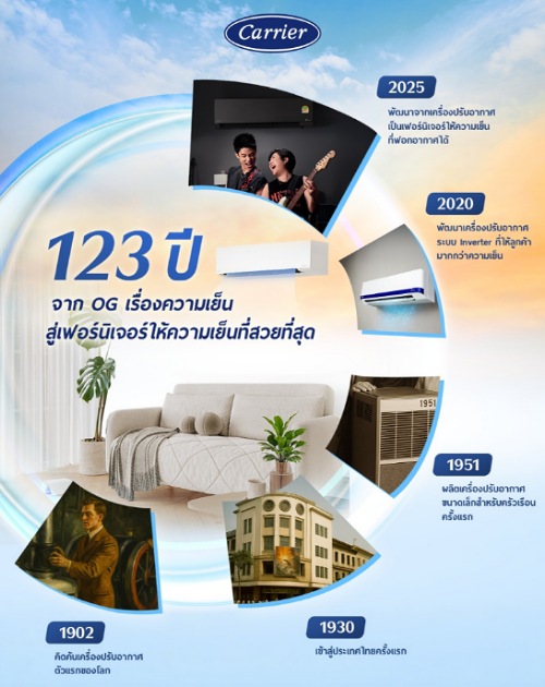 Carrier ไม่ใช่แค่แบรนด์เครื่องปรับอากาศทั่วไป แต่คือผู้คิดค้นเครื่องปรับอากาศเครื่องแรกของโลกในปี 1902 โดย วิลลิส แคเรียร์ (Willis Carrier) และเป็นผู้นำด้านเทคโนโลยีความเย็นมายาวนานกว่า 123 ปี ด้วยประสบการณ์ระดับโลกและความเชี่ยวชาญที่สั่งสมมาอย่างยาวนาน แคเรียร์จึงไม่ได้มองแอร์เพียงแค่เป็นเครื่องใช้ไฟฟ้า แต่เข้าใจว่าแอร์คือส่วนหนึ่งของชีวิตผู้คนทั่วโลก ที่ต้องตอบสนองทั้งความสะดวกสบาย และไลฟ์สไตล์