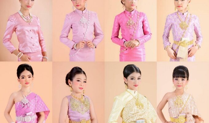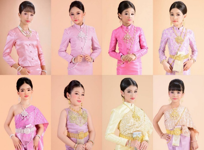 โดยนางแบบเด็กผู้สวมใส่ชุดไทยทั้ง 8 แบบ คือ