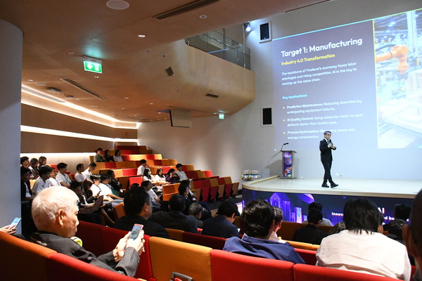 ในงานยังมีการบรรยายพิเศษ โดยเริ่มต้นจาก รศ.ดร.นพพร ลีปรีชานนท์ รองผู้อำนวยการ สำนักงานคณะกรรมการส่งเสริมวิทยาศาสตร์ วิจัยและนวัตกรรม (สกสว.) ที่มาเผยหัวข้อ “พลิกโฉมงานวิจัยสู่การสร้างผลงานด้าน AI ระดับเซียน ตามด้วย ดร.วิบูลย์ รักสาสน์เจริญผล รองเลขาธิการ สภาอุตสาหกรรมแห่งประเทศไทย ที่ได้นำเสนอ ‘แนวทางการส่งเสริมเทคโนโลยี AI ในอุตสาหกรรมของประเทศไทย’ และการชี้แจงประเด็นสำคัญจาก ดร.รัฐภูมิ ตู้จินดา รองผู้อำนวยการ หน่วยบริหารและจัดการทุนด้านการพัฒนากำลังคน และทุนด้านการพัฒนาสถาบันอุดมศึกษา การวิจัยและการสร้างนวัตกรรม (บพค.) เรื่อง ‘บทบาทของ บพค. ในการขับเคลื่อนการพัฒนากำลังคนทักษะสูงในอุตสาหกรรม AI’ ซึ่งเน้นย้ำถึงความร่วมมือของทุกภาคส่วนในการใช้ AI ขับเคลื่อนประเทศอย่างแท้จริง