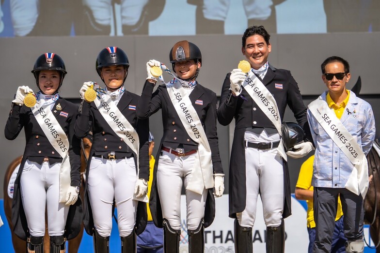 สมาคมกีฬาขี่ม้าแห่งประเทศไทยในพระบรมราชูปถัมภ์ ร่วมแสดงความยินดีกับความสำเร็จของนักกีฬาทีมชาติไทย หลังประเทศไทยทำผลงานได้อย่างยอดเยี่ยมในการแข่งขัน Dressage Team Final ในมหกรรมกีฬา ซีเกมส์ ครั้งที่ 33 คว้า เหรียญทองประเภททีม จากการแข่งขันซึ่งจัดขึ้นเมื่อวันอาทิตย์ที่ 14 ธันวาคม 2568 ณ Thai Polo & Equestrian Club Pattaya (B.Grimm Country Club)
