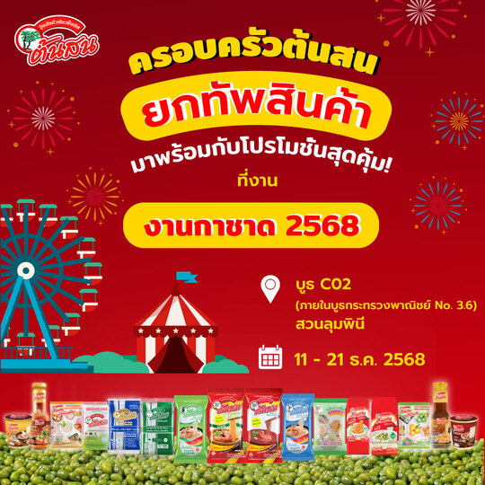 มาพบกันที่บูธ “ต้นสน” เลือกช้อปสินค้าหลากหลายจาก “ครอบครัวต้นสน” กับโปรโมชั่นสุดคุ้ม ได้ที่บูธ C02 (ภายในบูธกระทรวงพาณิชย์ No. 3.6) ที่งานกาชาด 2568 สวนลุมพินี ตั้งแต่วันนี้ถึง 21 ธ.ค. 68 เวลา 11.00 – 22.00 น.