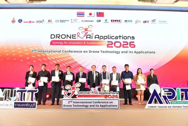 สำนักวิทยบริการและเทคโนโลยีสารสนเทศ มทร.ธัญบุรี เปิดฉากงานประชุมวิชาการระดับนานาชาติด้านเทคโนโลยีและนวัตกรรมอากาศยานไร้คนขับ ครั้งที่ 2 ภายใต้แนวคิดการผสานพลังโดรนและปัญญาประดิษฐ์ (AI) เพื่อสร้างสรรค์นวัตกรรมและความยั่งยืน มุ่งยกระดับขีดความสามารถของไทยในเวทีโลกสอดรับยุทธศาสตร์ชาติและการเป็นมหาวิทยาลัยแห่งนวัตกรรม ณ โรงแรมโนโวเทล กรุงเทพฟิวเจอร์พาร์ค รังสิต เมื่อวันที่ 26 กุมภาพันธ์ 2569 โดยมี รศ.ดร.สมหมาย ผิวสอาด อธิการบดีมหาวิทยาลัยเทคโนโลยีราชมงคลธัญบุรี (มทร.ธัญบุรี) เป็นประธานในพิธีเปิด