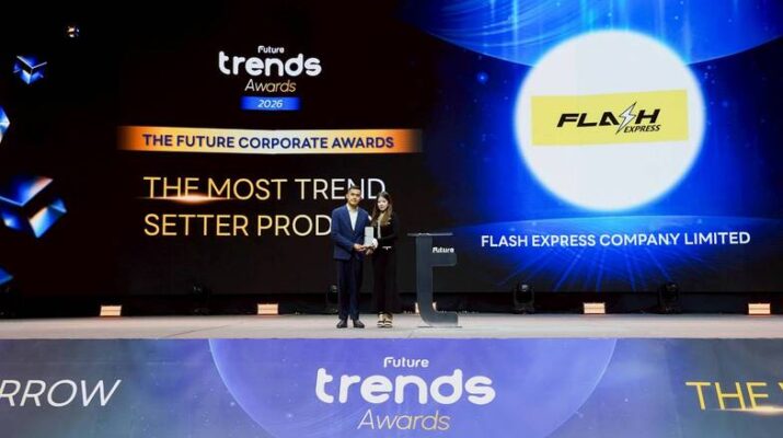 บริษัท แฟลช เอ็กซ์เพรส จำกัด โดยนางสาว ปรินทร์ทิพย์ อิสริยเมธา ผู้ช่วยรองกรรมการผู้อำนวยการสื่อสารองค์กร และรัฐกิจสัมพันธ์ กลุ่มธุรกิจแฟลช เป็นผู้แทนบริษัทฯ รับมอบรางวัล Future Trends Awards 2026 กลุ่มรางวัล The Future Corporate Awards สาขา The Most Trend Setter Product (รางวัลสุดยอดองค์กรผู้นำเทรนด์ด้านผลิตภัณฑ์) ตอกย้ำองค์กรแห่งอนาคตที่เป็นที่สุดในด้านการสร้างสรรค์นวัตกรรม และการปรับตัวที่ไม่หยุดนิ่ง เพื่อส่งมอบคุณค่าที่ยั่งยืนให้กับสังคมในวงกว้าง